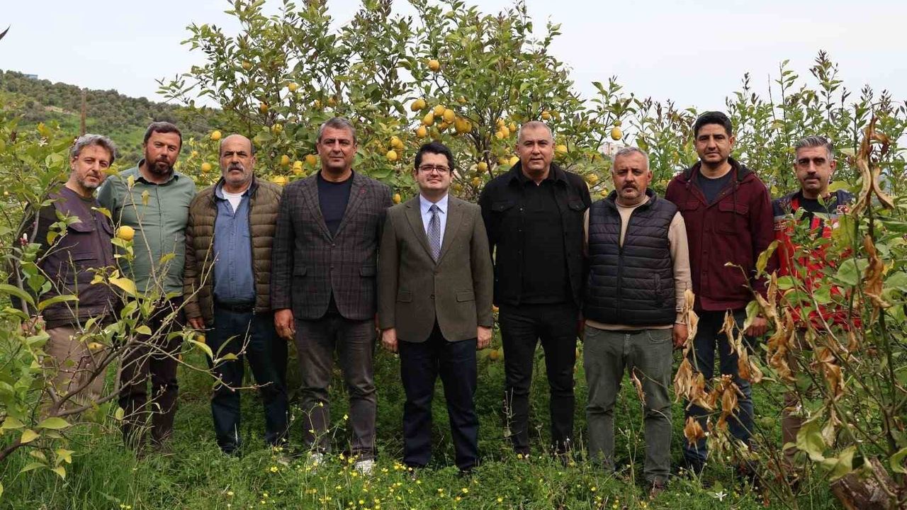 Kaymakam Eroğlu, İlçe Tarım ve Orman Müdürü Serkan Yılmaz ve müdürlük personeli ile birlikte Samet Hamarat'a ait Avcılarsuyu Mahallesindeki Yediveren limon bahçesinde incelemelerde bulunarak hasada eşlik etti.