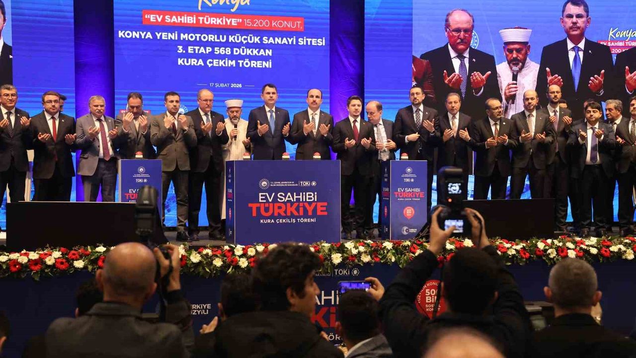 Bakan Kurum, Konya'da 'Ev sahibi Türkiye' projesi kapsamında inşa edilecek 15 bin 200 konut ve Konya Motorlu Küçük Sanayi Sitesi 3. Etap 568 Dükkan Kura Çekim Töreni'ne katıldı. Tören Selçuklu Kongre Merkezi'nde İstiklal Marşı ve Cumhurbaşkanı Recep Tayyip Erdoğan'ın mesajının okunmasıyla başladı. Programda konuşan Bakan Murat Kurum, Konya'ya yeni eserler vermek için canla başla mücadele etmeye devam ettiklerini söyledi.