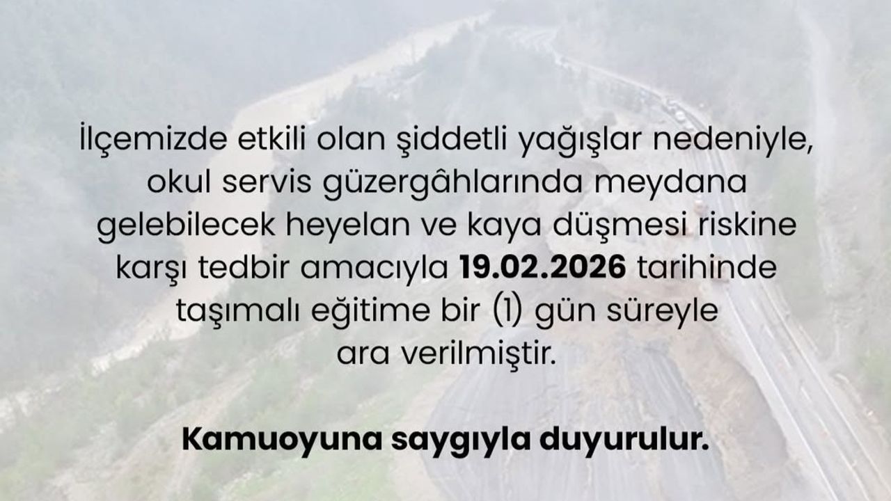 Feke Kaymakamlığı tarafından yapılan açıklamada, ilçede devam eden yoğun yağışların ulaşımı olumsuz etkileyebileceği belirtilerek, tedbir amaçlı 19 Şubat'ta taşımalı eğitim kapsamında okullarda eğitime 1 gün süreyle ara verildiği açıklandı. Öğrencilerin can güvenliğinin ön planda tutulduğu belirtilen açıklamada, olumsuz hava şartlarına karşı vatandaşların dikkatli ve tedbirli olmaları istendi.