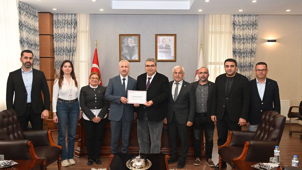 Sertifika, Rektörlük makamında İl Sağlık Müdürü Sıtkı Sönmez ve beraberindeki heyet tarafından Rektör Veysel Eren’e takdim edildi. Takdim törenine Sağlık Hizmetleri Başkanı Tolga Alkan, Halk Sağlığı Başkanı Arif Yeniçeri, Birim Sorumlusu Gülnur Barutçu, Diyetisyen Demet Huş ile Rektör Yardımcıları Prof. Dr. Mehmet Turan ve Prof. Dr. İbrahim Halil Çerçi ve Sağlık Kültür ve Spor Daire Başkanı Mustafa Tiyekli katıldı.