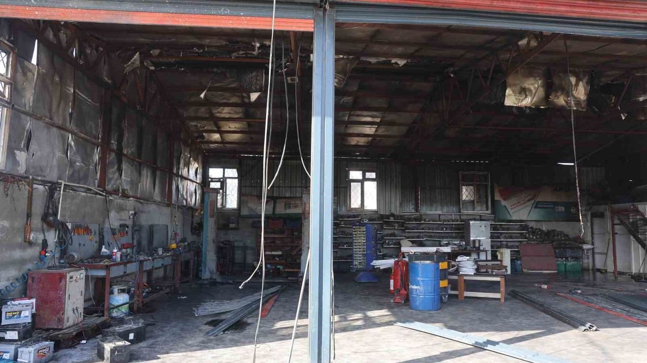 Hatay'ın Antakya ilçesinde alevlere teslim olan iş yerinde maddi hasar oluşurken içeride kalan araç kullanılamaz hale geldi.